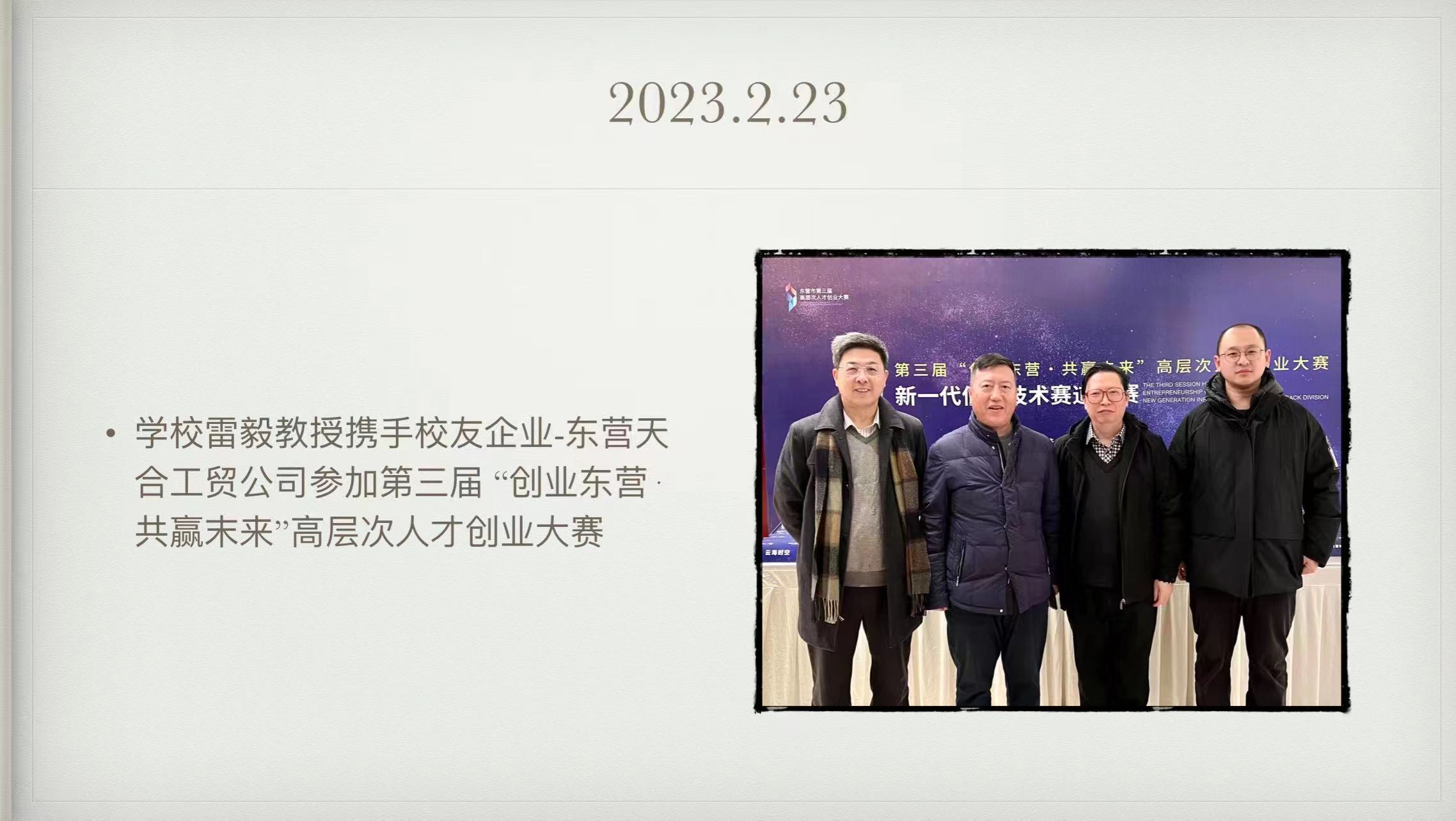 2023年2月23日在我公司總經理的帶領下技術人員參加了第三屆“創(chuàng)業(yè)東營·共贏未來”高層次人才創(chuàng)業(yè)大賽