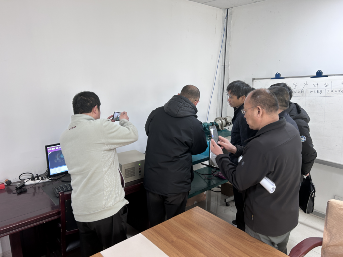 技術人員向中石化考察團介紹螺紋缺陷檢測設備