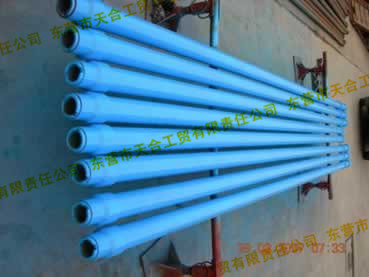 概述:油井中由于抽油泵不斷地抽吸原油,使地層砂進(jìn)入井底、井下積砂、埋油層,造成停產(chǎn)。目前,井下積砂都是用沖砂的辦法把砂子沖到地面上來。但是這樣沖砂的辦法還有很多不足:如沖砂時(shí)必須有泵車、罐車,成本高,尤其是當(dāng)井漏時(shí),砂子不僅沖不出來,而且砂子隨井液進(jìn)入油層而造成油層污染。CB-TH-70×4000、CB-TH-83×4000型快速抽砂裝置是我公司從油層保護(hù)的角度設(shè)計(jì)出的能把井底砂全部取出的新裝置,它不用泵車進(jìn)行水循環(huán)沖砂,而是用通井機(jī)起下油管上下移動(dòng),即可把砂子吸入油管中,提出油管把砂子帶到地面上來,完全避免了沖砂的弱點(diǎn)。